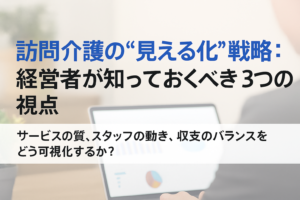 今回は、経営者が押さえておきたい3つの視点から、訪問介護の見える化戦略を考えてみましょう。